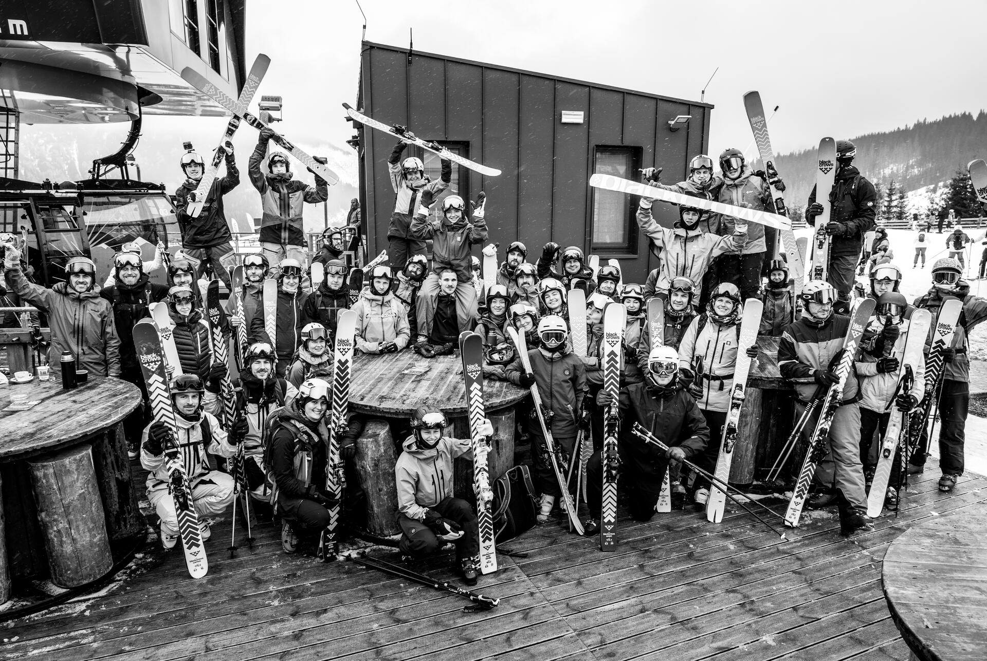 Na parkovisku pred Hotelom Liptov sa ráno zoradila flotila Black Crows, skupiny sa postupne vydali na svah a Chopok na pár hodín patril vranám. Nechýbalo spoločné pojazdenie, obed na Kamennej chate, zdieľané snacky ani popoludňajší polet v snowparku.